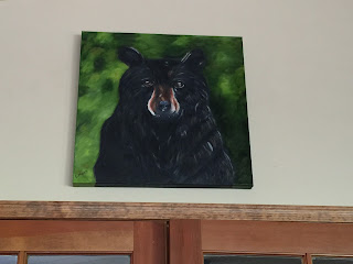 Brought up my first bear painting, 24"x24" and got it hung, but it needs more along side of it. I have a series of bear paintings planned, but this is the only one I have finished. Hopefully by next trip I will have another one done so this bear won't be so lonely. Any authentic cabin needs bear paintings.